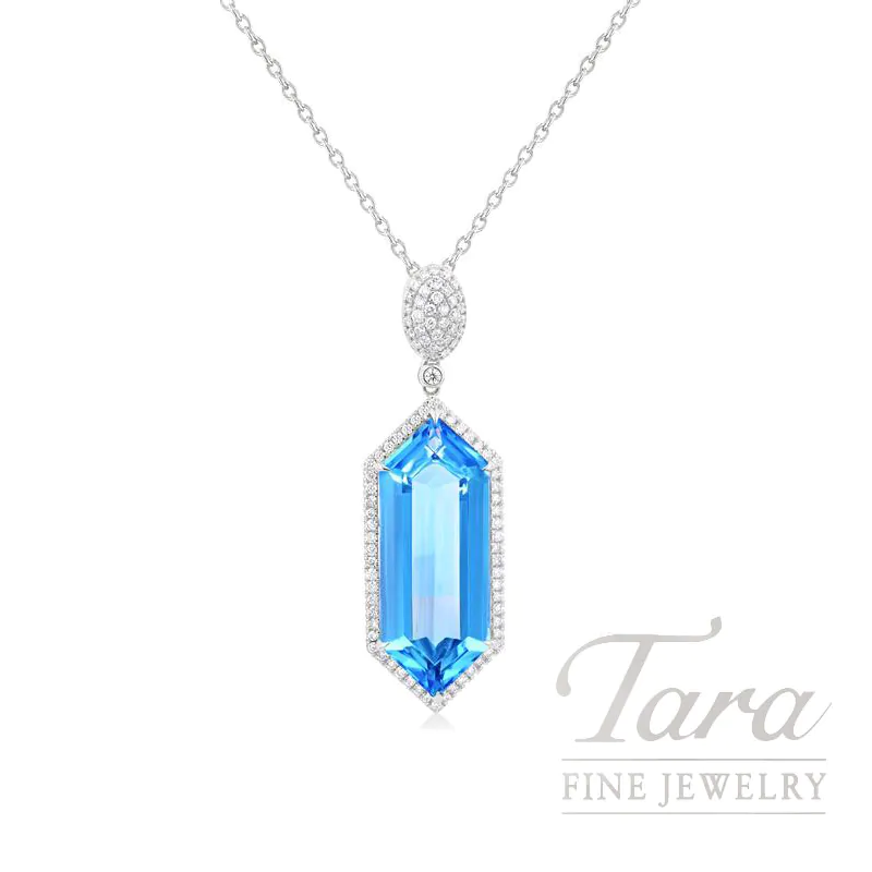 18K White Gold Sky Blue Topaz Pendant Necklace 3.60TGW, .30TDW