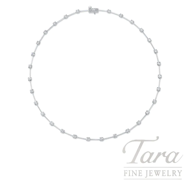 14K White Gold Diamond Riviera Necklace, 10.00TDW
